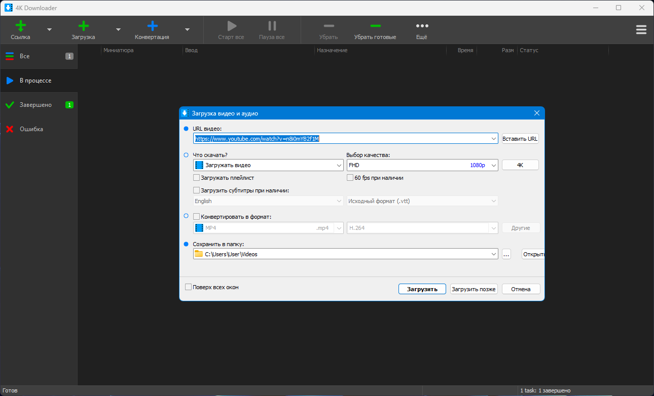 Программа обладает современным и удобным интерфейсом, позволяющим быстро и без усилий загружать видео или аудио в нужных форматах и качестве. Она поддерживает работу с целыми плейлистами и списками воспроизведения, автоматическое вставление URL и преобразование видео в различные разрешения, включая 4K и 8K Ultra HD.