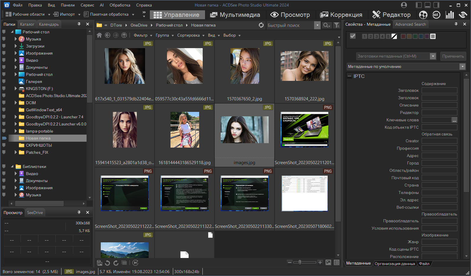 - Поддержка метаданных IPTC и возможность работы с цифровыми негативами DNG.