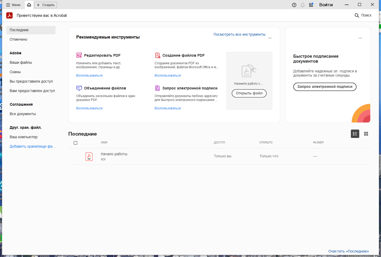 - Интеграция с облаком Document Cloud для хранения и совместного редактирования