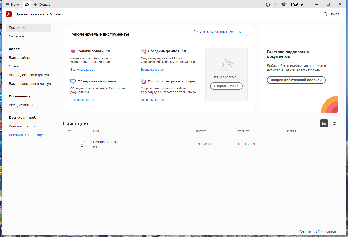 - Интеграция с Adobe Document Cloud, что обеспечивает доступ к файлам с любого устройства и из любой точки мира.