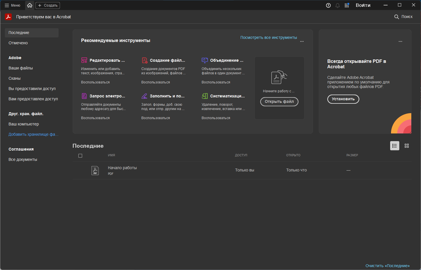 - Интеграция с облачным сервисом Document Cloud, позволяющая работать с файлами в браузере без установки дополнительного ПО.