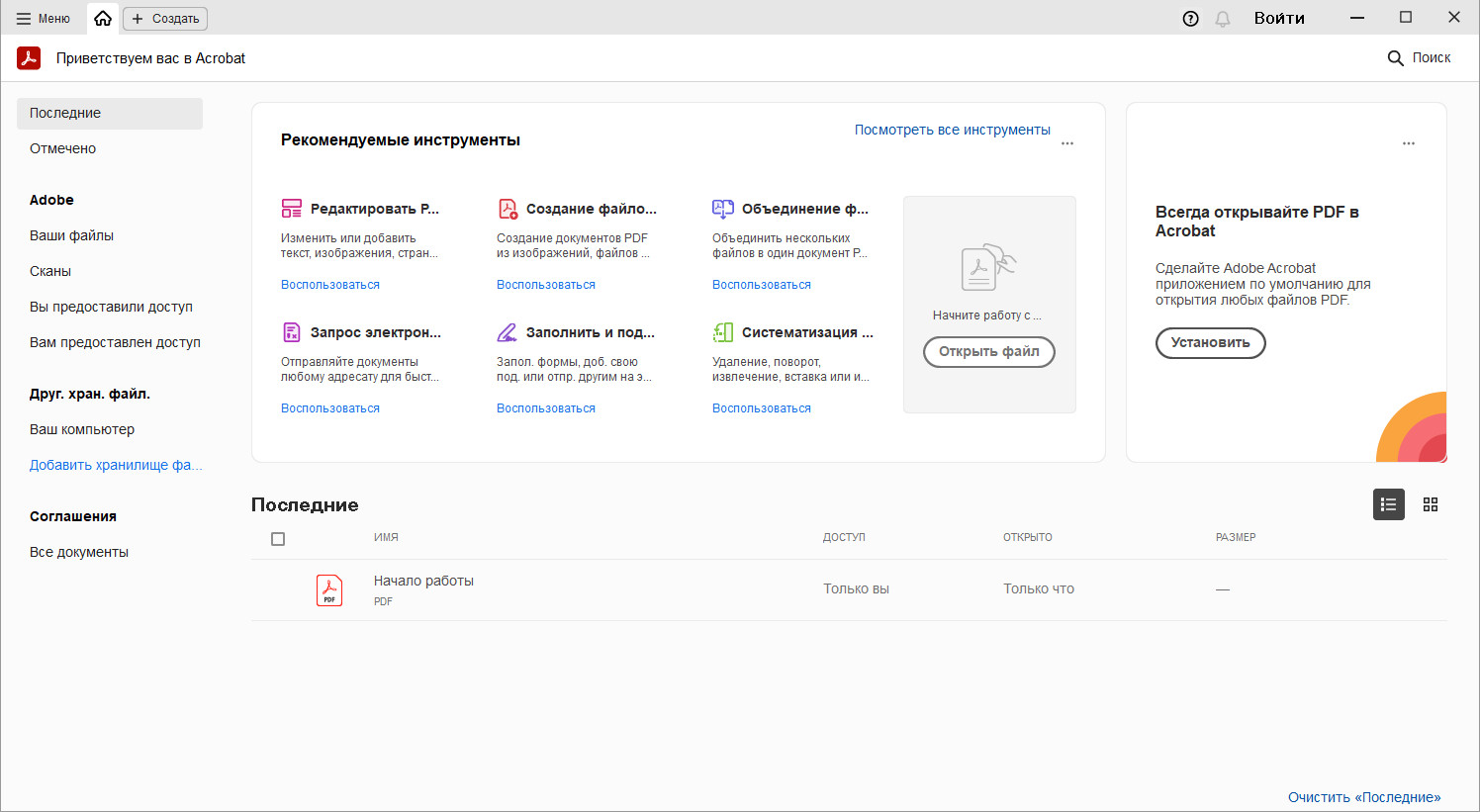 - Интеграция с облачными сервисами Document Cloud для хранения и совместной работы с файлами.