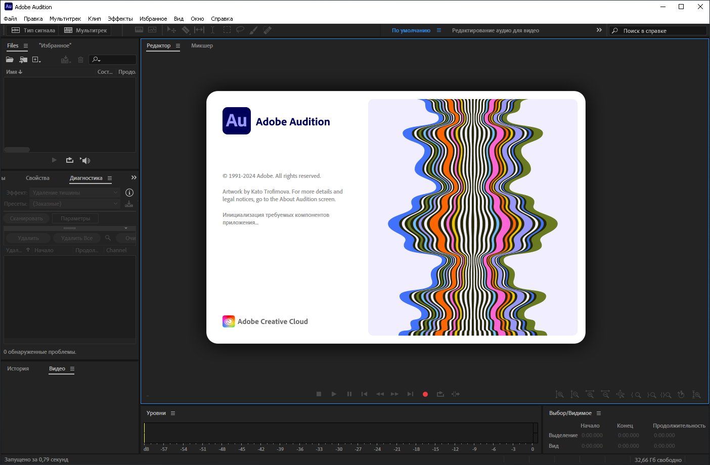 Ниже приведены основные технические характеристики и сведения о версии Adobe Audition 2024, а также о способе её активации.