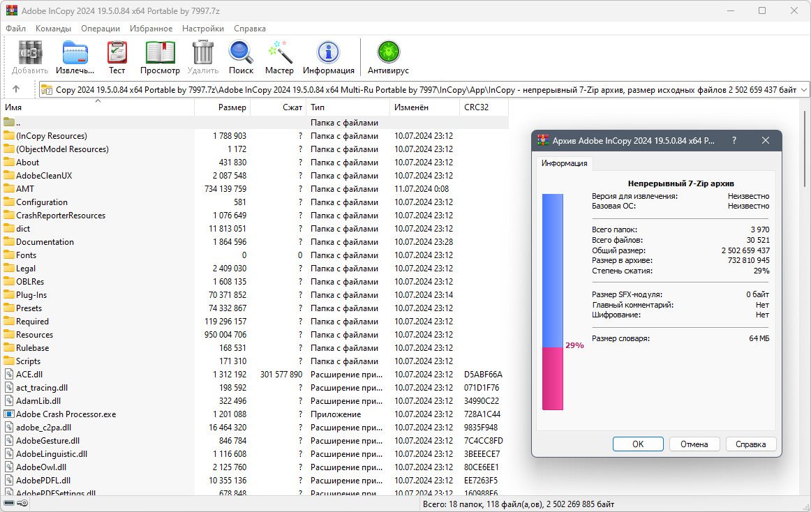 Ниже приведена таблица с основными техническими характеристиками Adobe InCopy 2024, доступными в портативной версии repack-by-7997.