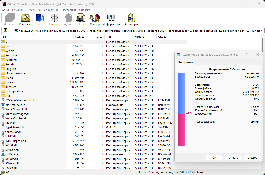 Ниже приведены основные технические характеристики и особенности версии Photoshop 2025 26.5.0.16 Light (x64 bit) Portable от repack-by-7997: