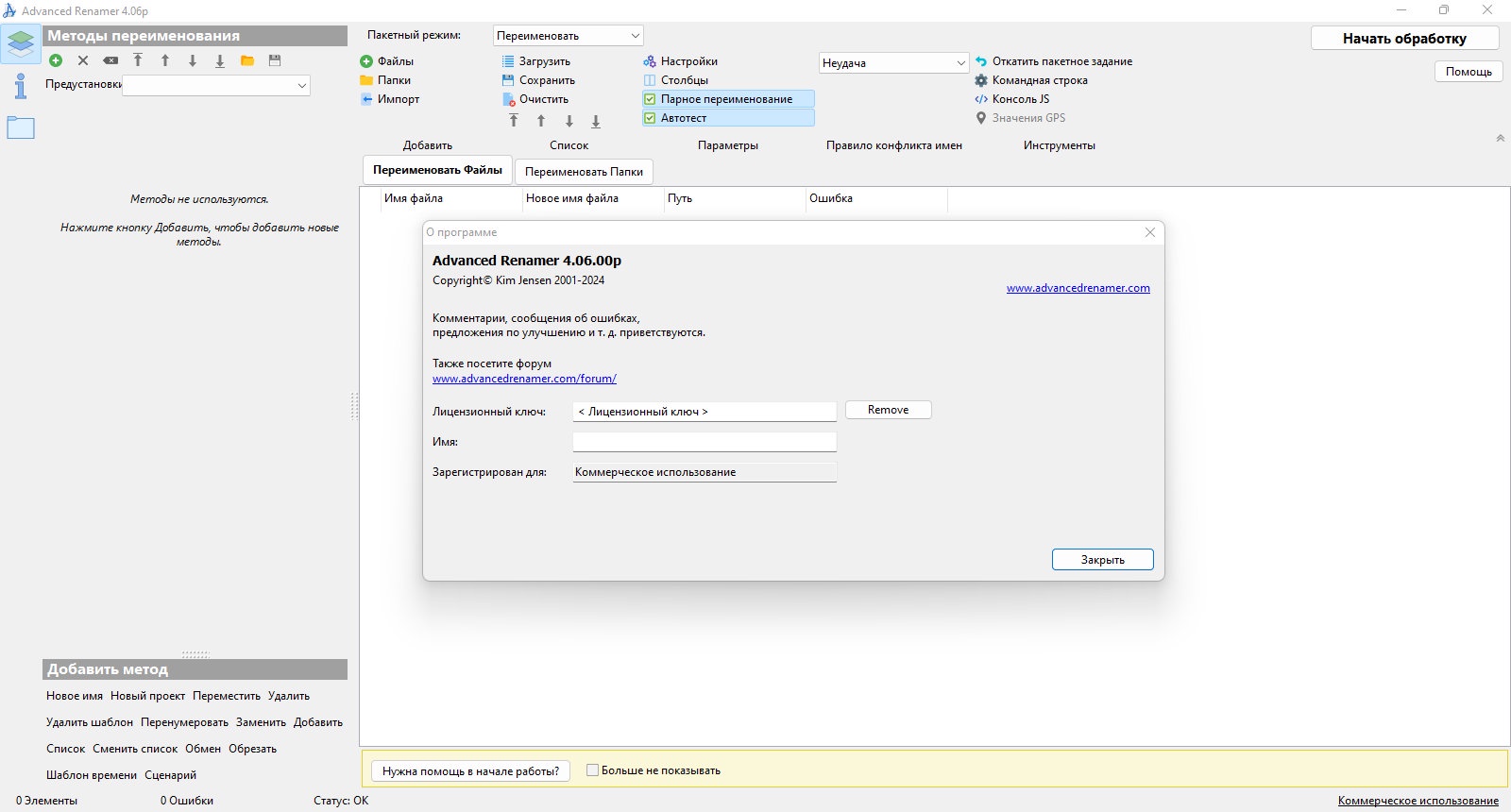 Advanced Renamer 4.06 — это мощная программа для массового переименования файлов и папок в операционной системе Windows. Она предназначена для упрощения организации и систематизации больших объемов данных, предоставляя пользователю широкие возможности по настройке имен и метаданных.