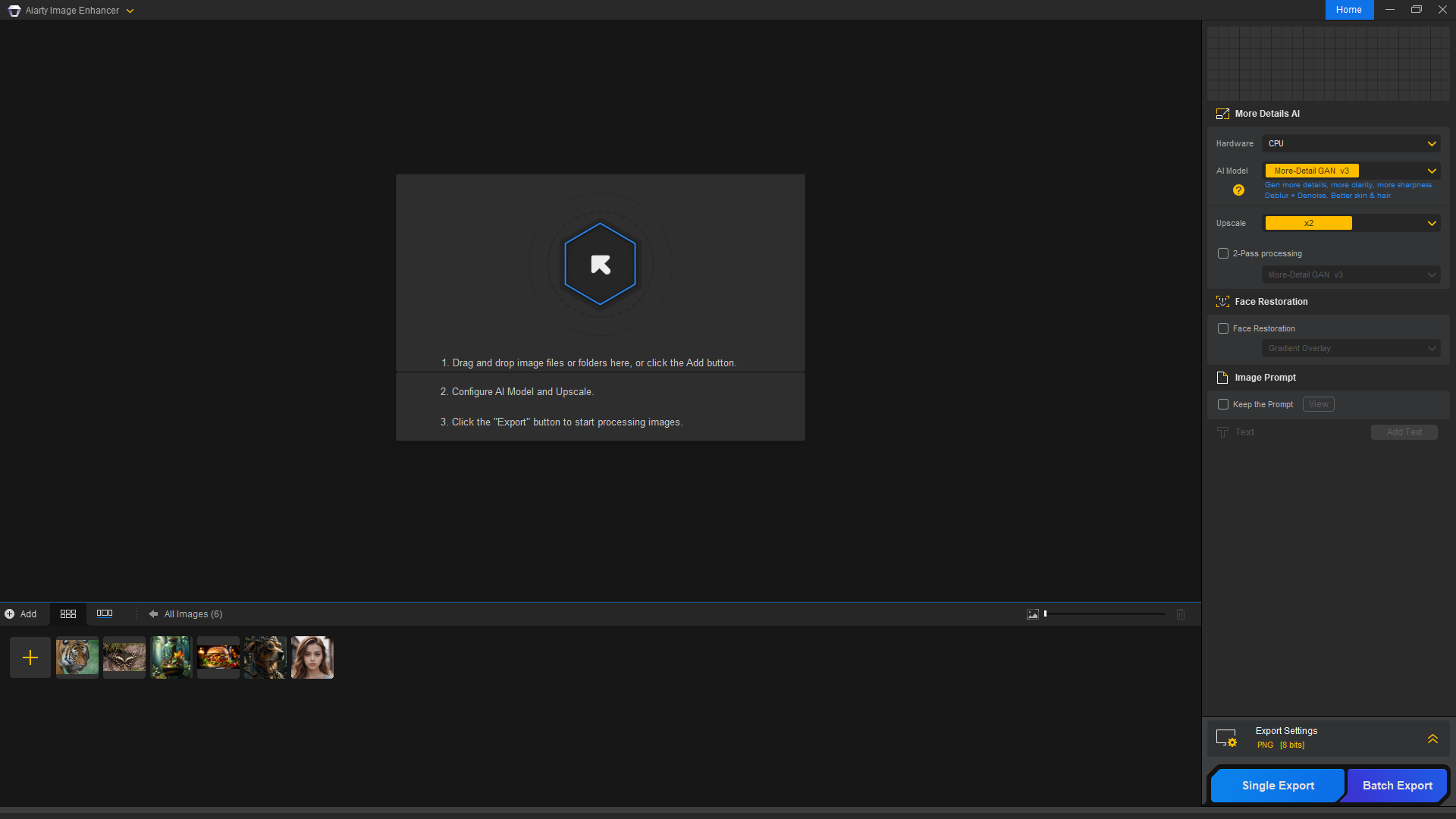 Aiarty Image Enhancer использует передовые алгоритмы генеративного ИИ для автоматической обработки изображений, что позволяет получать высококачественные результаты без необходимости глубокого технического знания. Благодаря поддержке пакетной обработки и широкому набору инструментов, программа становится незаменимым помощником для фотографов, дизайнеров и любителей цифрового искусства.