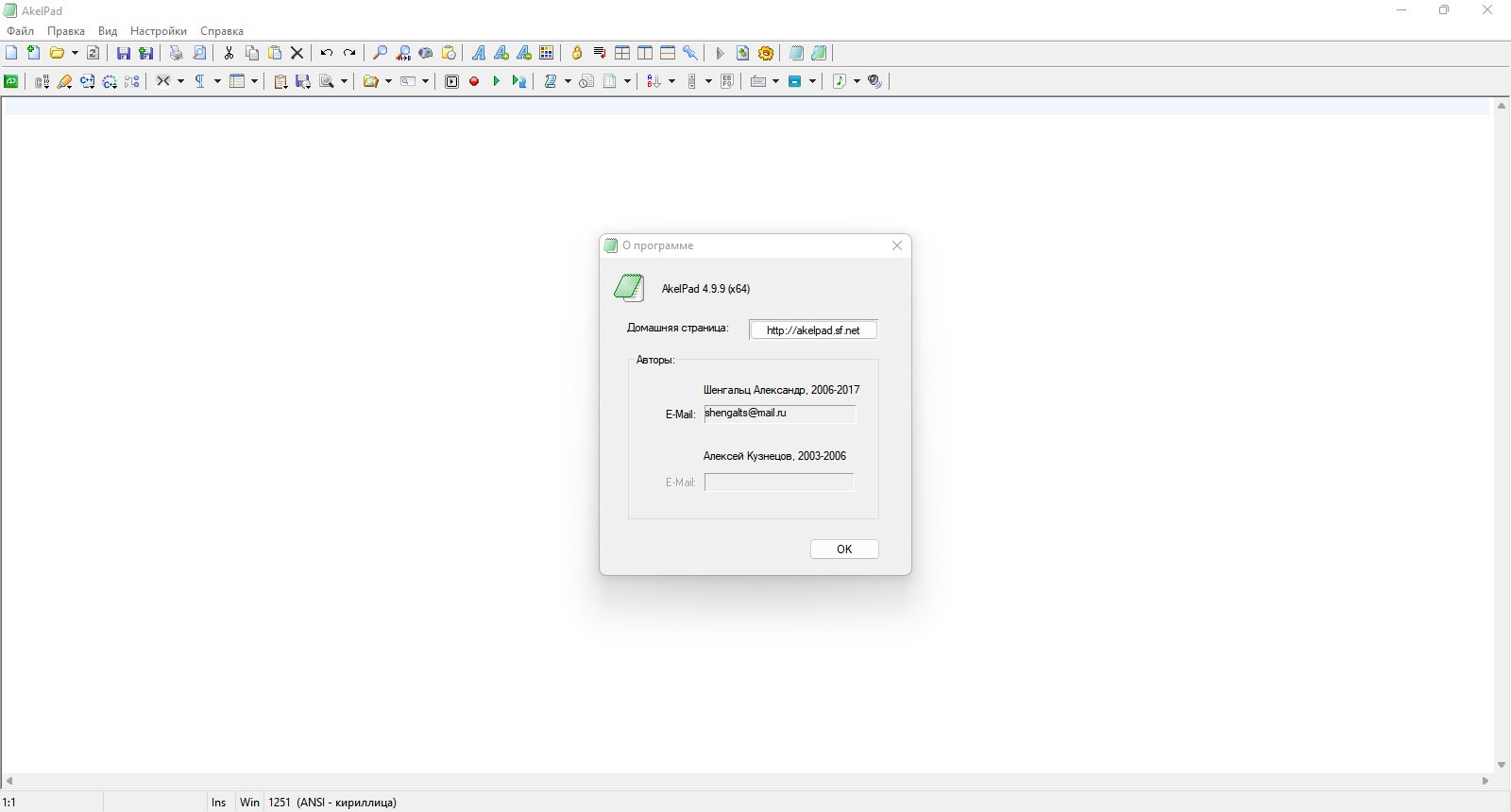 Ниже приведены основные технические характеристики и детали сборки AkelPad 4.9.9.