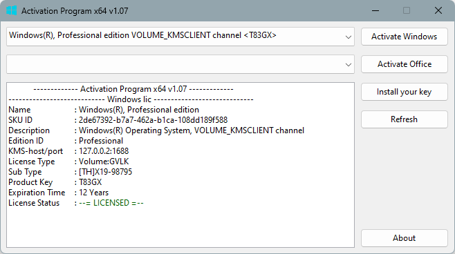 Activation Program 1.07 Portable by Ratiborus — это мощный инструмент для офлайн-активации лицензий продуктов Microsoft. Он предназначен для быстрого и безопасного изменения записей активации в системе, обеспечивая работу лицензионных ключей без необходимости подключения к интернету. Обзор программы Activation Program 1.07 Portable позволяет пользователям активировать Windows и Office в автоматическом режиме, используя различные методы и технологии. …