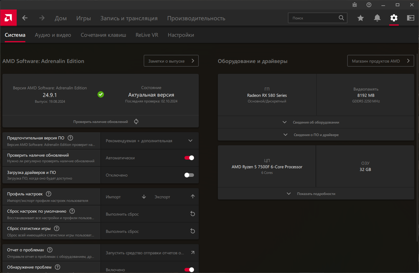 | Версия программы | 24.9.1 WHQL |