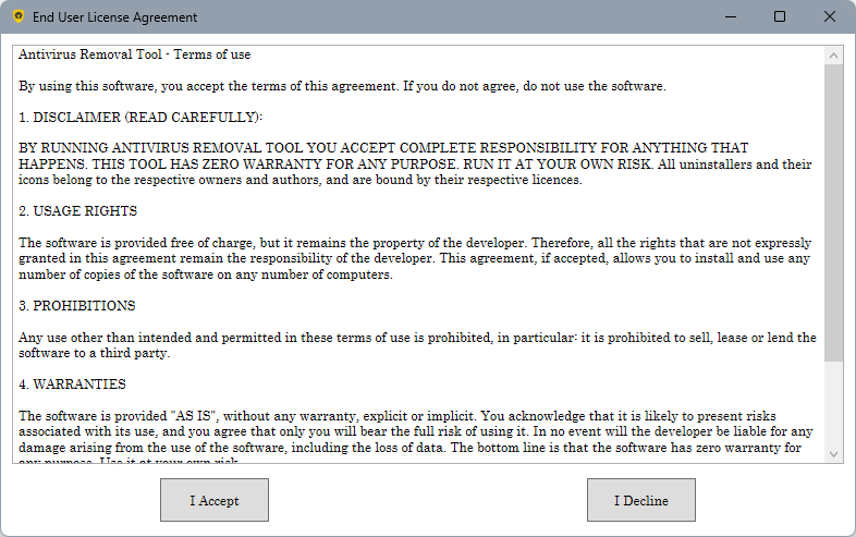 В списке ниже перечислены основные функции и возможности Antivirus Removal Tool: