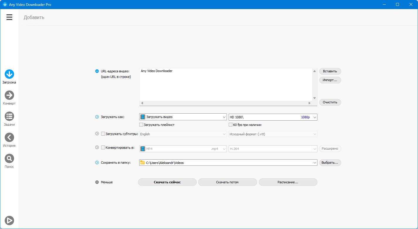 Any Video Downloader Pro — это мощное приложение для Windows, предназначенное для загрузки видео и аудио с популярных онлайн-платформ, таких как YouTube, Facebook и Dailymotion. Программа позволяет ускорить процесс скачивания и легко управлять несколькими загрузками одновременно, а также конвертировать файлы под любые нужды.