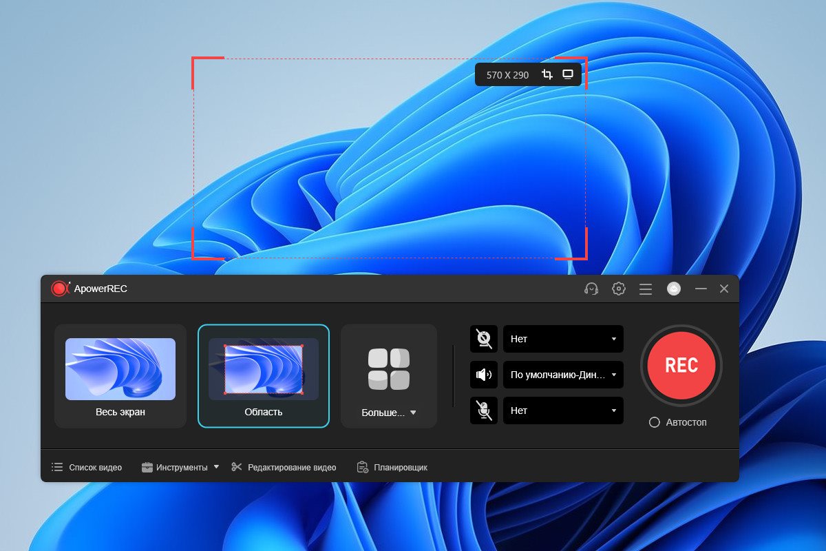 ApowerREC — это мощное программное обеспечение для записи экрана, предназначенное для создания видеоуроков, демонстраций и записи онлайн-встреч. Программа обладает широкими возможностями по захвату различных источников видео и аудио, а также инструментами для редактирования и конвертирования записанных файлов.