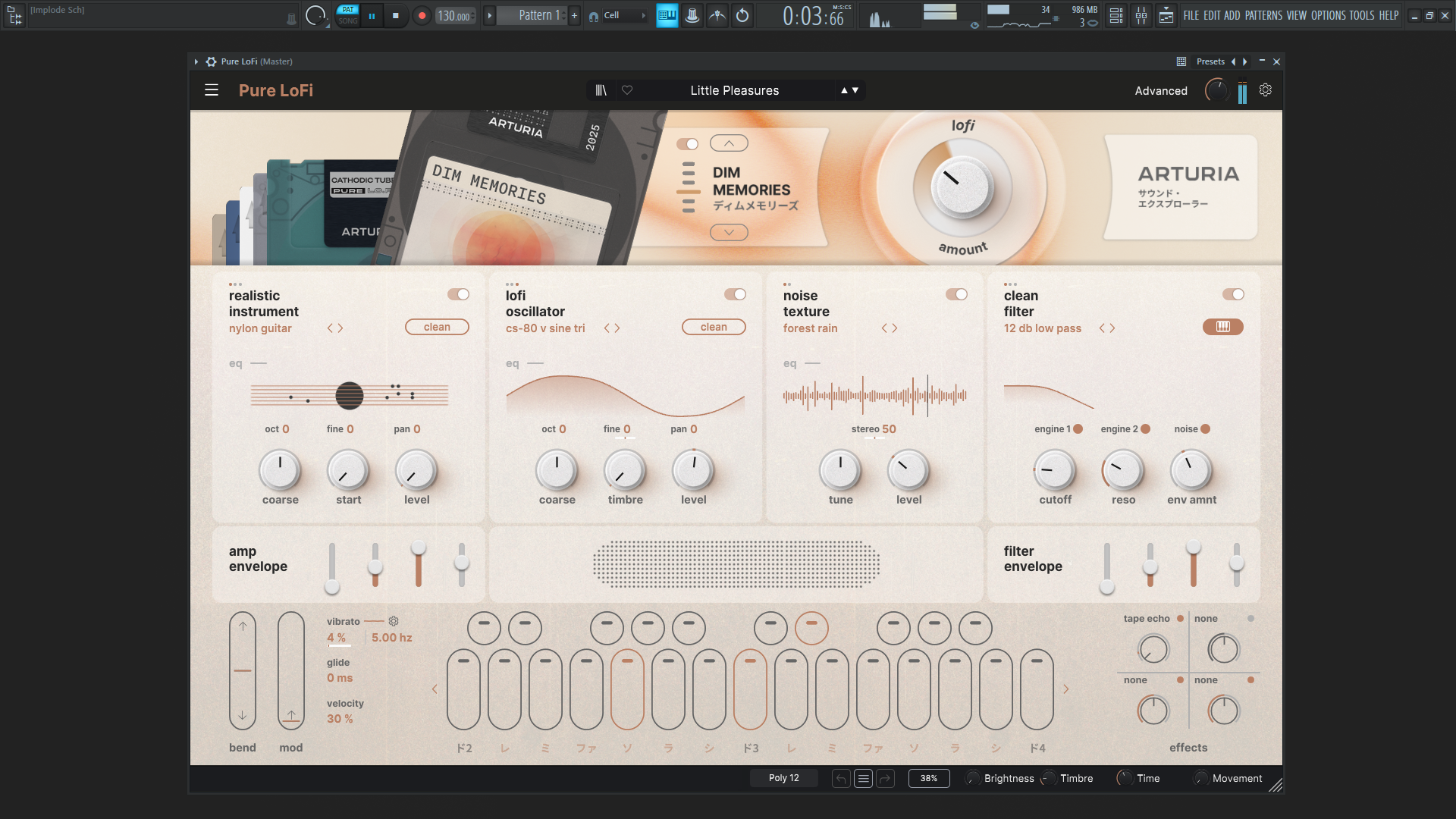 - Обширные возможности модуляции, включая огибающие, макросы и случайные генераторы.