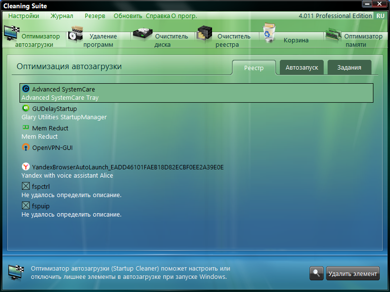 - Многофункциональный очиститель системы, включающий очистку диска, реестра и корзины