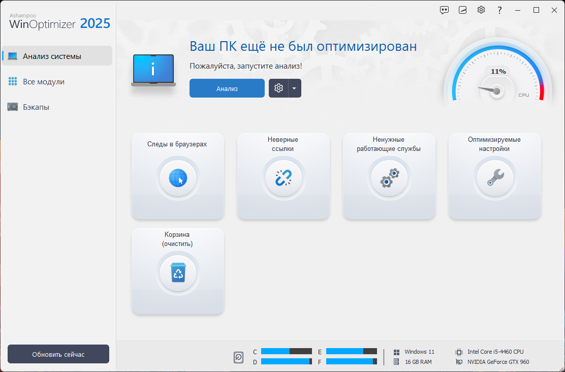 В Ashampoo WinOptimizer 2025 реализован широкий спектр инструментов, позволяющих кастомизировать работу Windows под свои нужды, устранить возможные проблемы и ускорить работу системы.