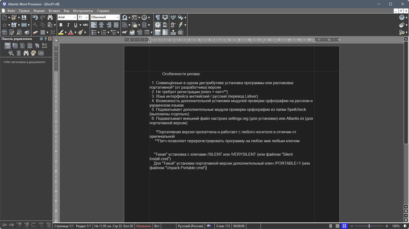Ниже приведены основные технические характеристики версии 4.4.0.4 Atlantis Word Processor, а также данные о сборке и активации.