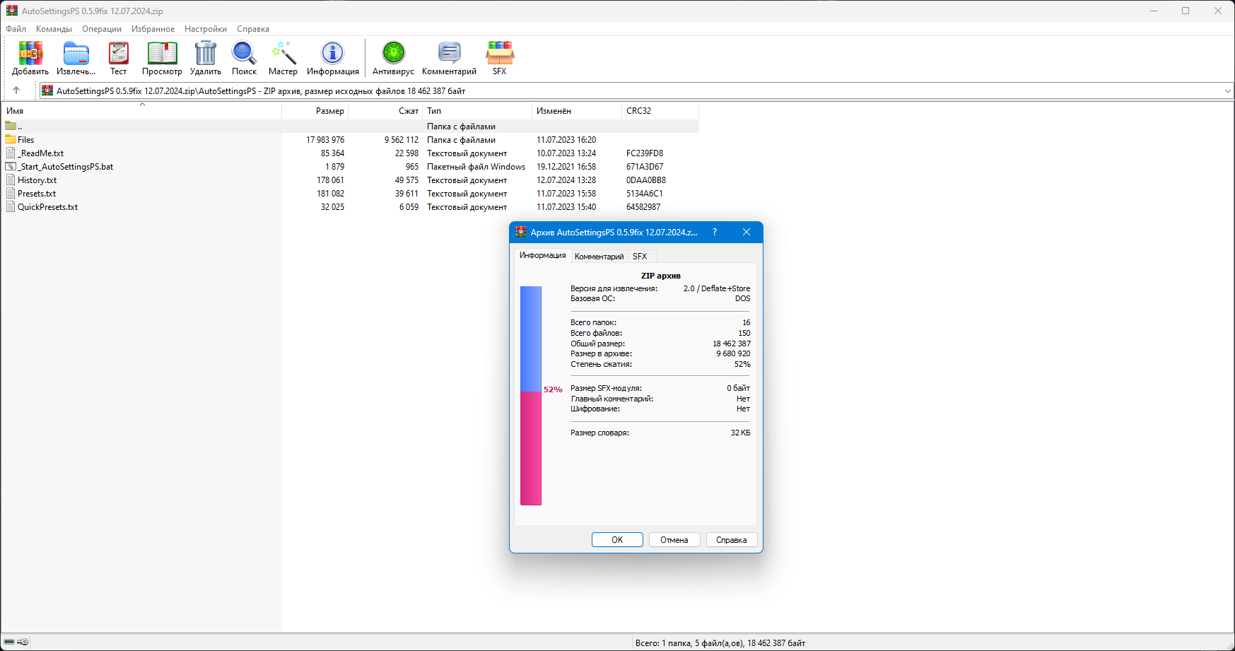 Ниже приведены основные технические характеристики AutoSettingsPS: