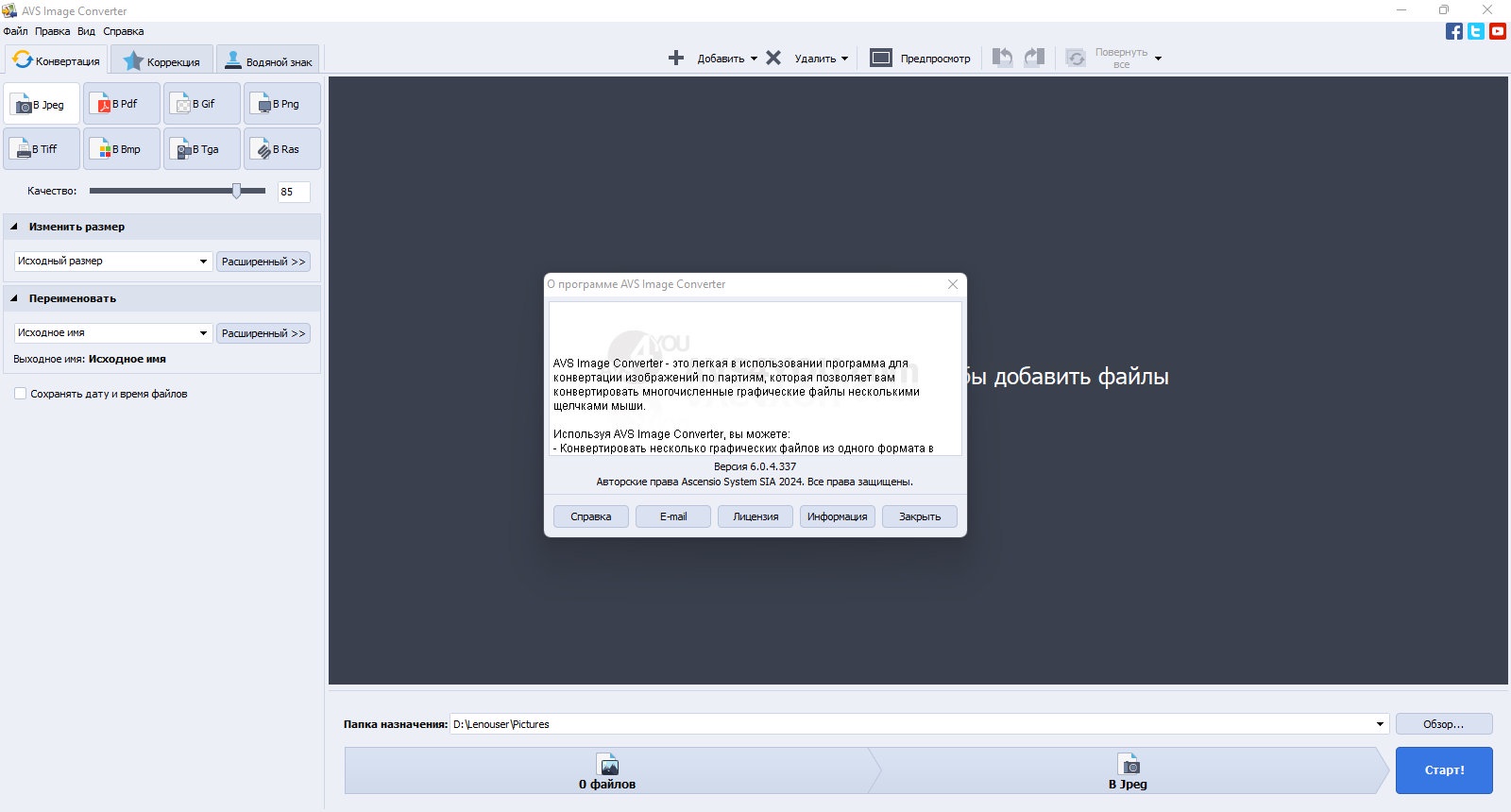 AVS Image Converter — это мощная и удобная программа для работы с изображениями, предназначенная для быстрого и качественного конвертирования графических файлов различных форматов. Она отлично подходит как для профессиональных дизайнеров, так и для обычных пользователей, которым требуется редактировать и преобразовывать изображения без сложных настроек.