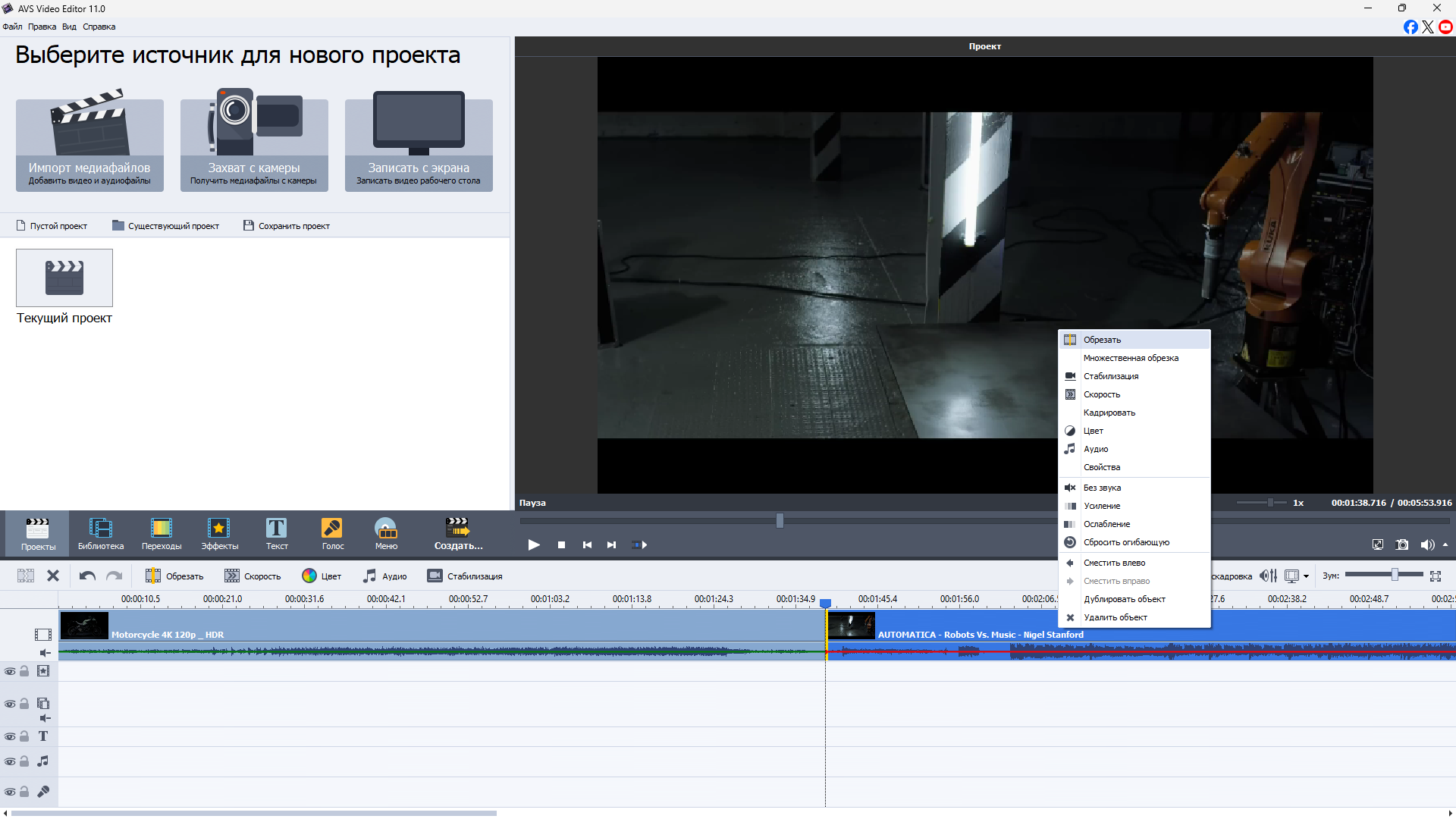 - Редактирование аудио и видео с применением эффектов, обрезкой и добавлением титров.