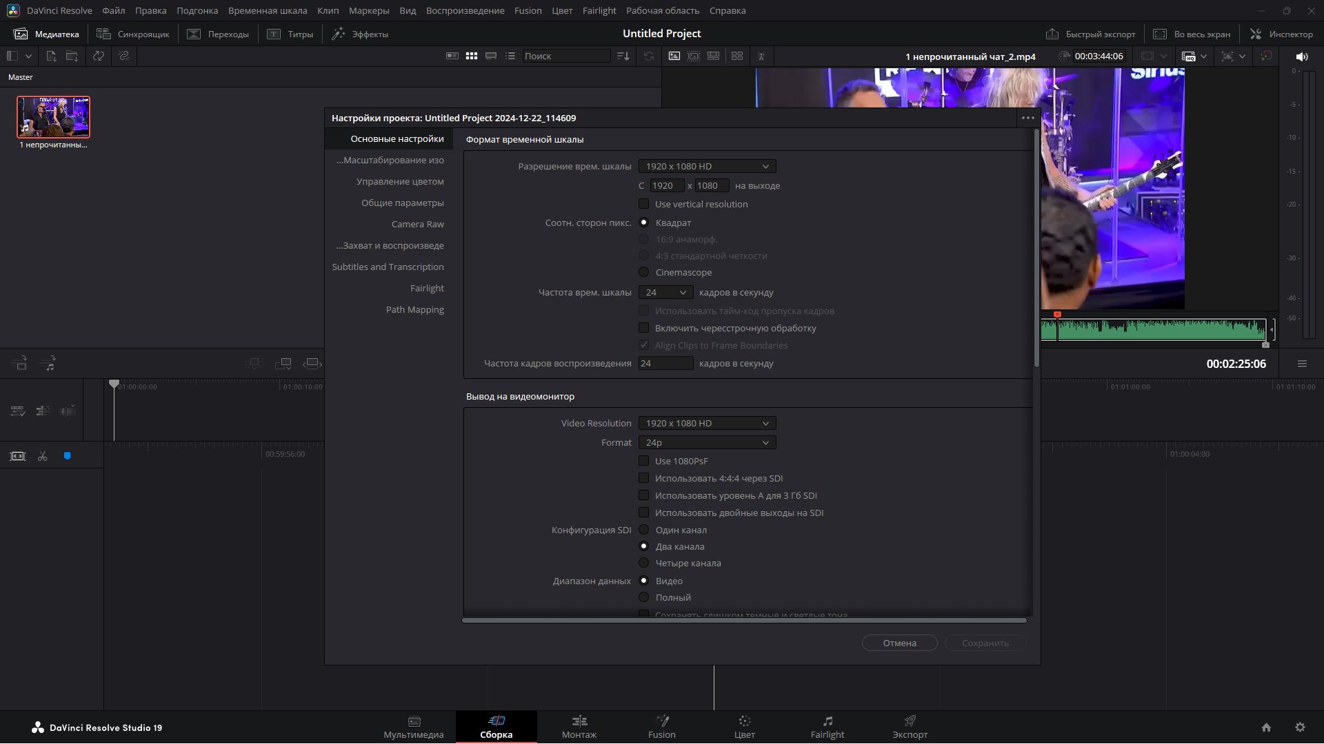 Ниже приведены основные технические характеристики и сведения о версии DaVinci Resolve Studio 19.1.2:
