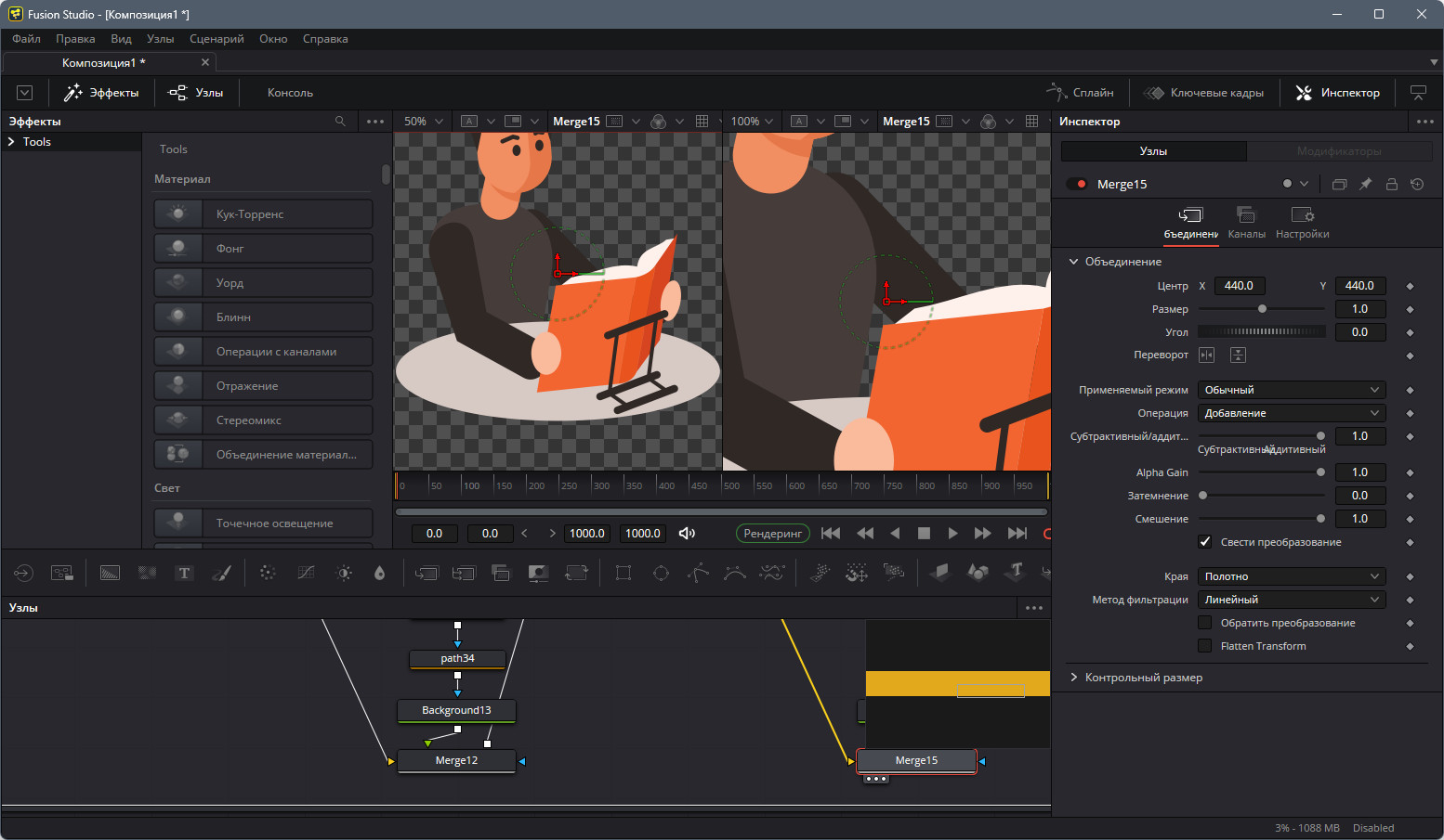 - Мощные инструменты кеинга и ротоскопирования, позволяющие создавать сложные маски и выделять объекты.