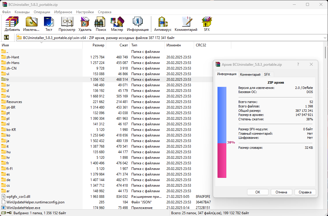 Ниже приведены основные технические характеристики текущей версии Bulk Crap Uninstaller: