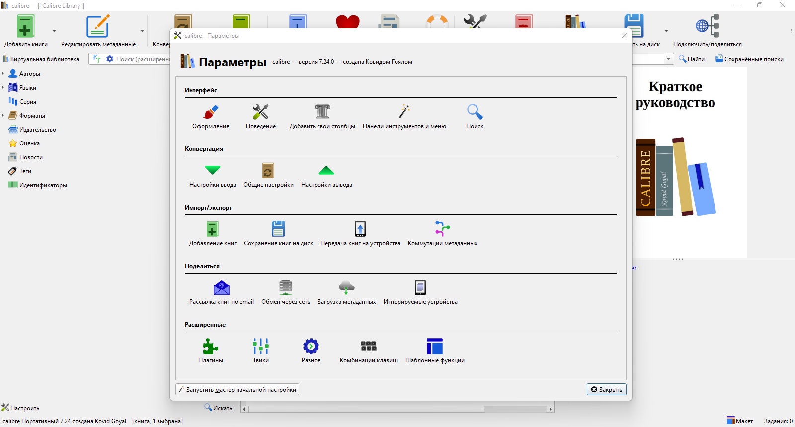 Calibre — это мощная и удобная программа для управления электронной библиотекой и конвертации книг в различные форматы. Она предназначена для тех, кто ценит порядок в коллекции и хочет легко работать с электронными книгами.