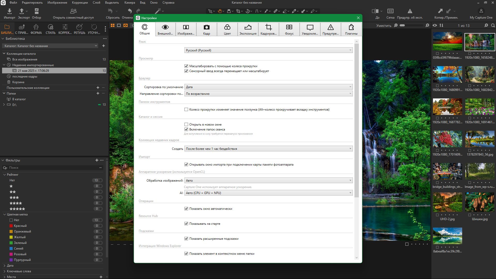 - Конвертация RAW в различные форматы: JPEG, TIFF, PNG, DNG и другие