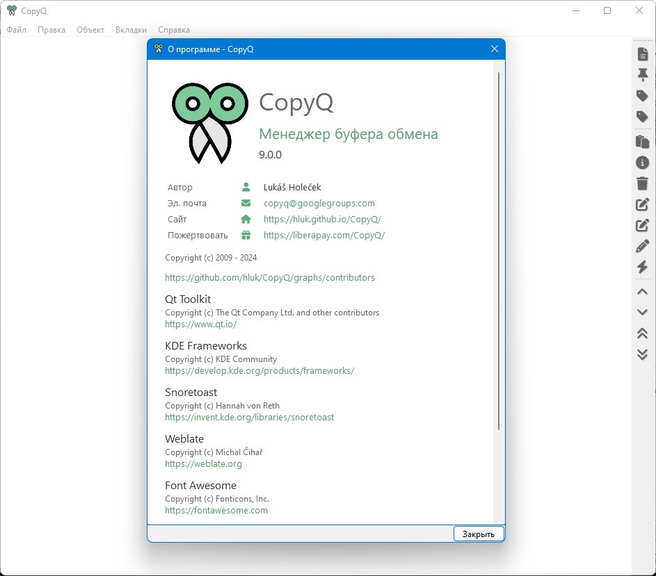 CopyQ — это универсальный менеджер буфера обмена, предназначенный для хранения, редактирования и быстрого доступа к копированным данным. Программа значительно повышает эффективность работы с повторяющимися текстами, изображениями и файлами, делая обмен информацией максимально удобным и быстрым.