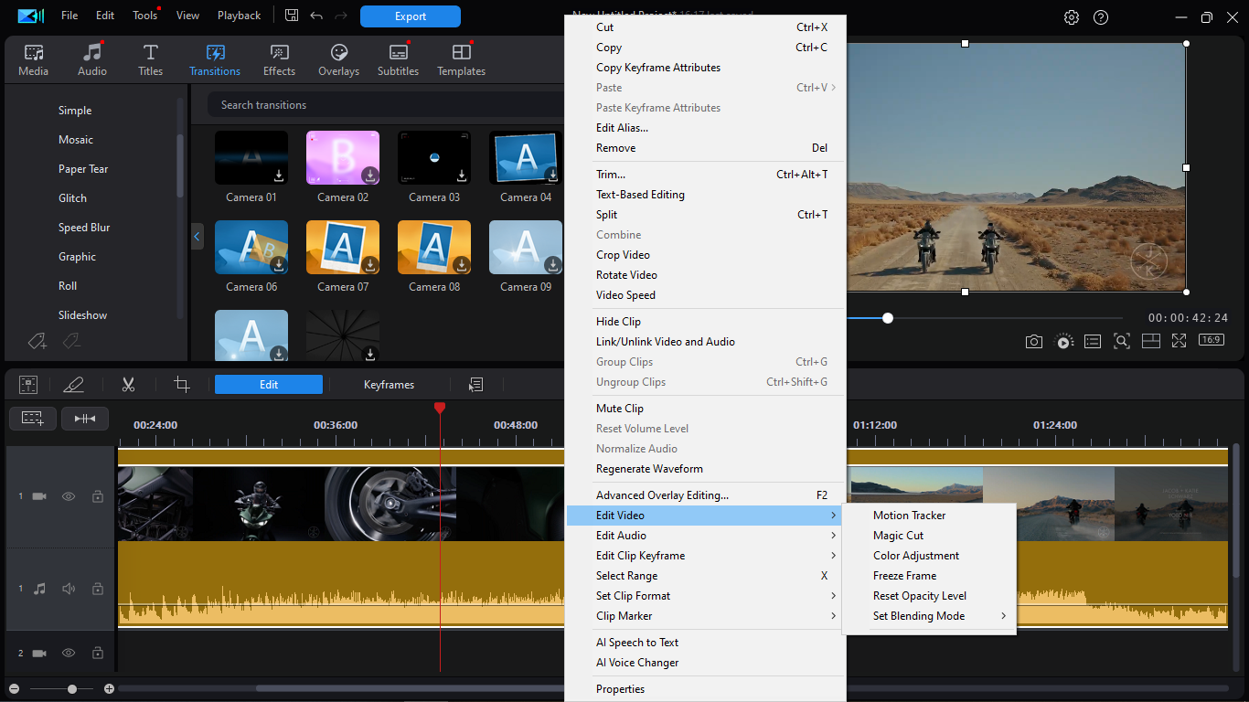 PowerDirector 2025 предлагает широкий набор функций для обработки и монтажа видео, включая поддержку современных форматов и технологий. В программе реализованы эффективные средства для ускорения работы и достижения высокого качества результата.