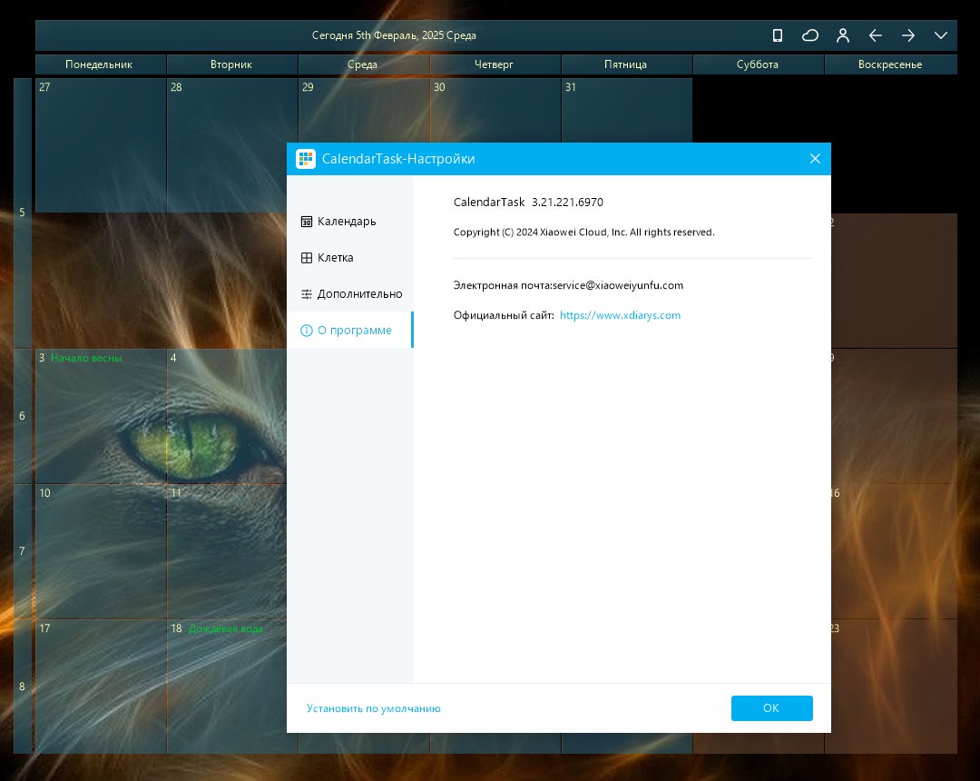 Desktop Calendar сочетает в себе функции классического календаря и многофункционального органайзера, предоставляя пользователю удобный интерфейс и широкий набор инструментов для организации времени.