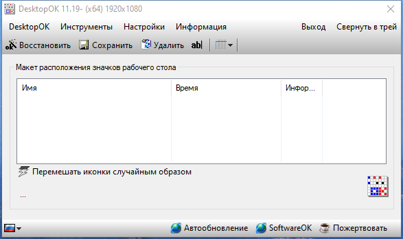 DesktopOK — это удобная и легкая программа, предназначенная для сохранения и восстановления положения иконок на рабочем столе Windows. Она особенно полезна для пользователей, которым приходится часто менять разрешение экрана или работать с проектором, что нарушает порядок значков. Программа помогает быстро возвращать рабочий стол к исходному виду без необходимости ручной перестановки элементов.