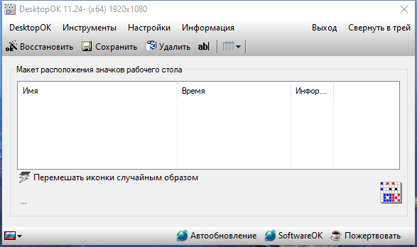 DesktopOK — это небольшая, бесплатная и портативная программа, предназначенная для сохранения и восстановления положения значков на рабочем столе Windows. Она помогает пользователям сохранять порядок на экране и быстро восстанавливать его после изменений разрешения или работы с проектором.