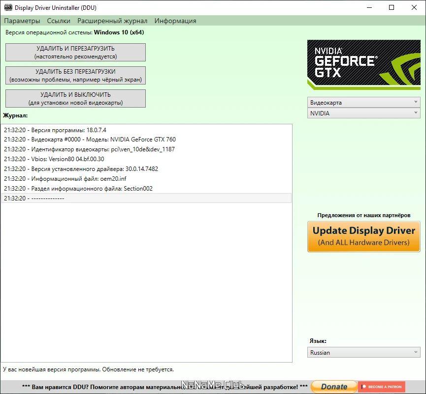 - Полное удаление драйверов видеокарт AMD, NVIDIA и Intel, а также драйверов Realtek и Sound Blaster.