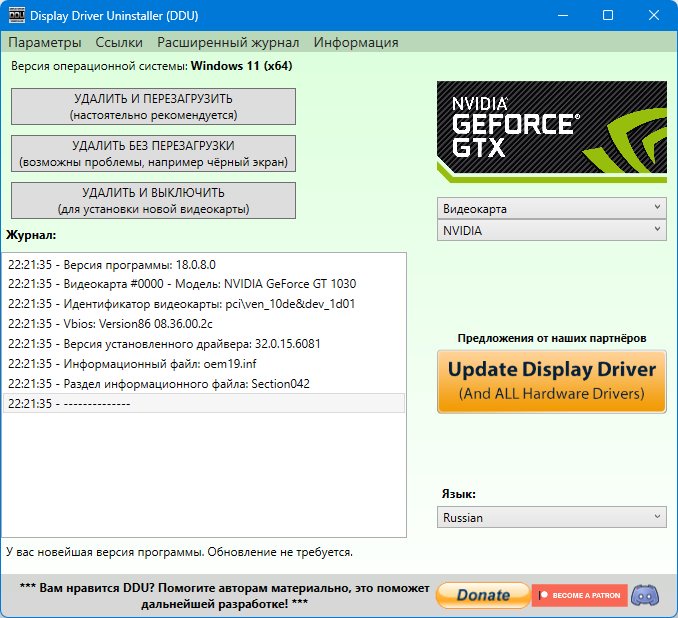 Display Driver Uninstaller позволяет полностью очистить систему от драйверов видеокарт AMD, NVIDIA, Intel и драйверов звуковых устройств, таких как Realtek или Sound Blaster. Это делает процесс переустановки драйверов безопасным и чистым, избегая возможных конфликтов и ошибок.