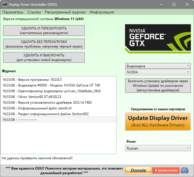 - Полное удаление драйверов видеокарт AMD, NVIDIA, Intel и звуковых драйверов Realtek / Sound Blaster
