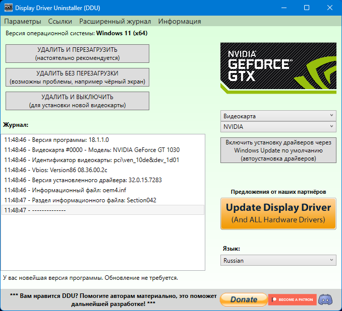 - Полное удаление драйверов видеокарт и звуковых устройств без остаточных файлов.