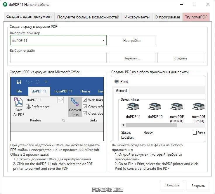 doPDF — это бесплатная программа для создания PDF-документов из различных форматов файлов. Она предназначена для быстрого и удобного преобразования документов, веб-страниц и сообщений электронной почты в универсальный формат PDF, сохраняющий исходное оформление.
