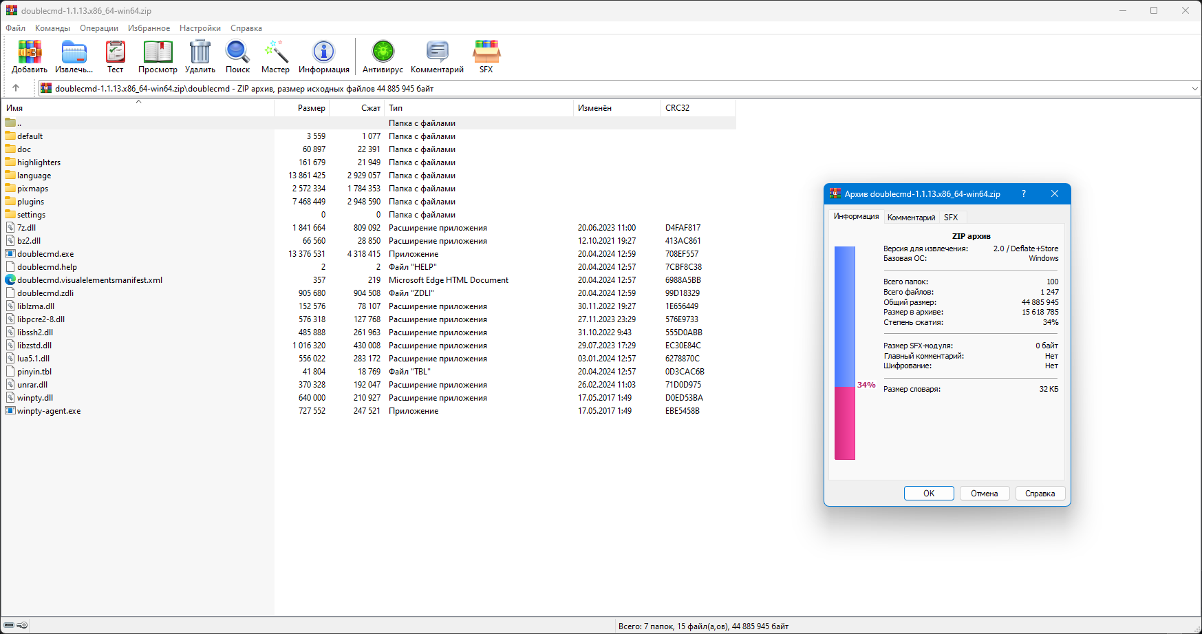 - Поддержка работы с архивами различных форматов, включая ZIP, RAR, 7Z, TAR и другие