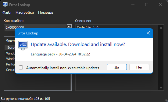 - Получение информации по кодам ошибок Windows, DirectX, NTSTATUS, WinInet, STOP