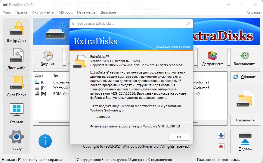 ExtraDisks — это мощный инструмент для создания виртуальных и зашифрованных дисков на вашем компьютере. Эта программа предназначена для повышения безопасности данных и удобства управления виртуальными носителями информации.