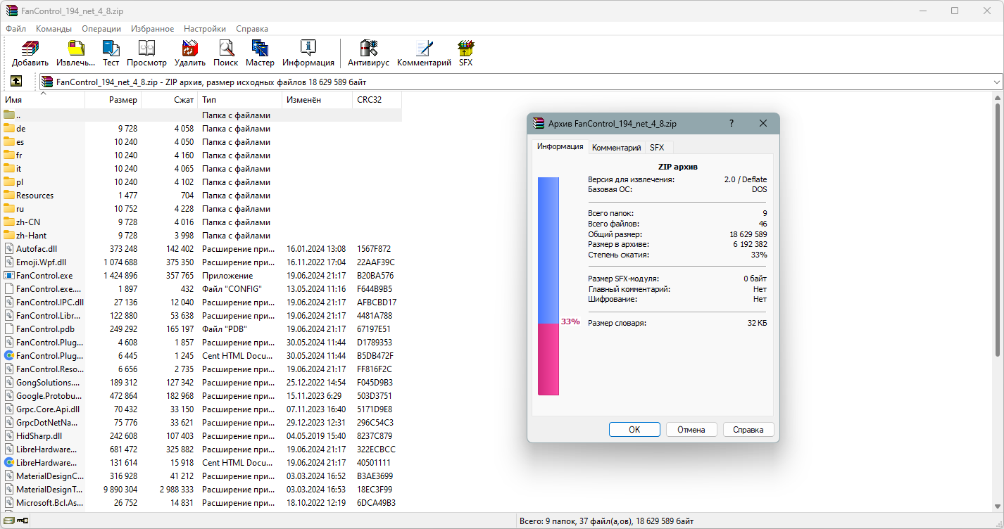 Ниже представлена техническая информация о версии FanControl V194: