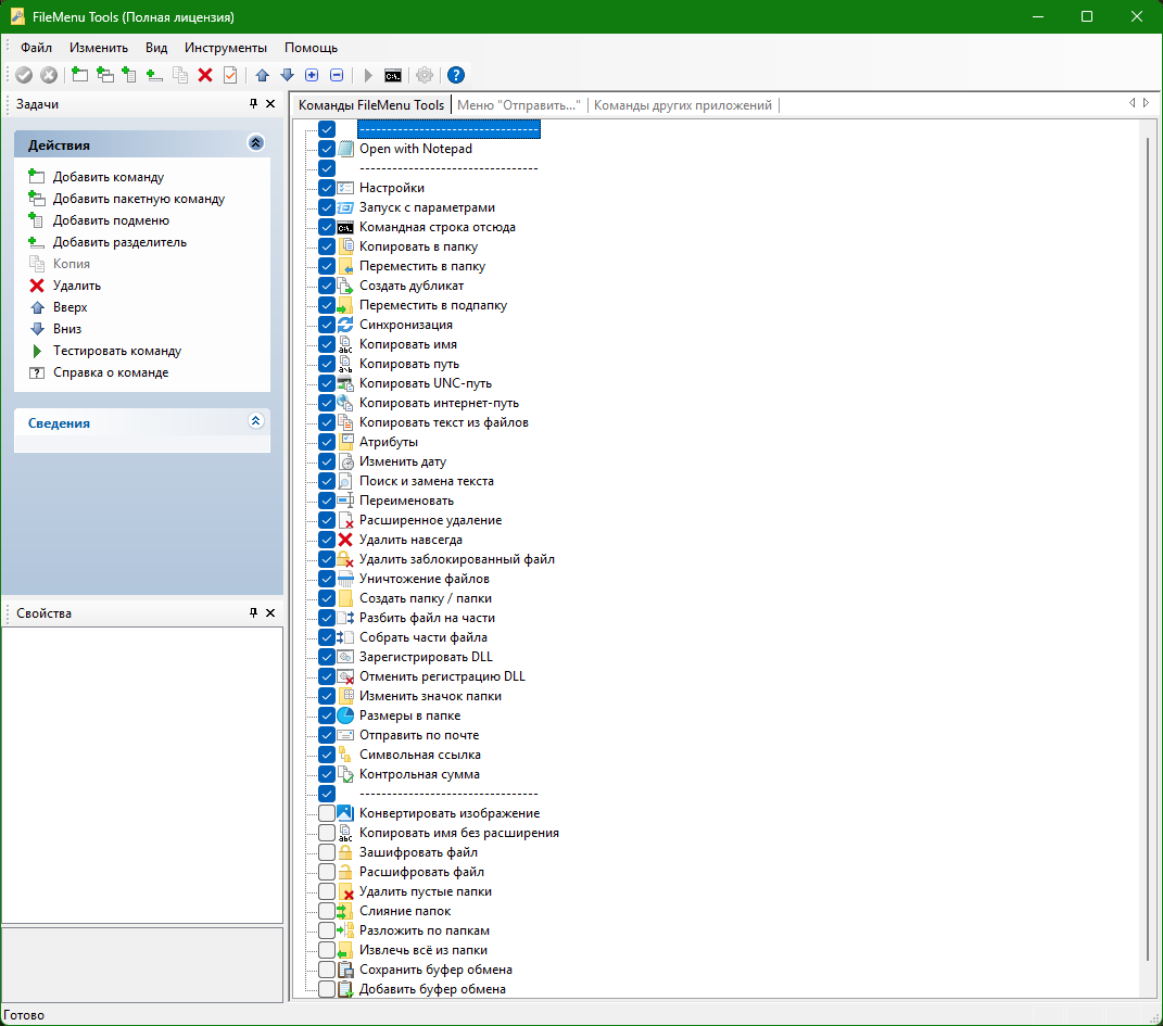 FileMenu Tools предоставляет пользователю возможность детально настроить пункты контекстного меню, создавая индивидуальные команды для выполнения различных действий. Программа идеально подходит для профессиональных пользователей и тех, кто ценит время и комфорт в работе с файлами.