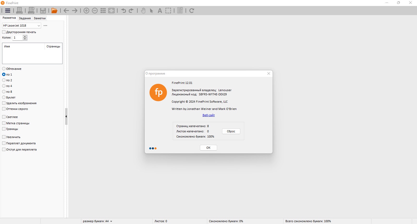 FinePrint 12.01 — это мощное программное решение для расширения возможностей печати на любом принтере, позволяющее значительно снизить расходы и повысить качество оформления документов. Эта программа подойдет как для домашнего использования, так и для корпоративных задач, связанных с массовой печатью и оформлением документов.
