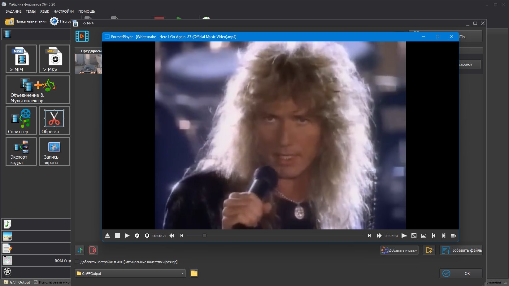 - Конвертация видеофайлов в популярные форматы (MP4, AVI, MKV, WMV, FLV и др.)