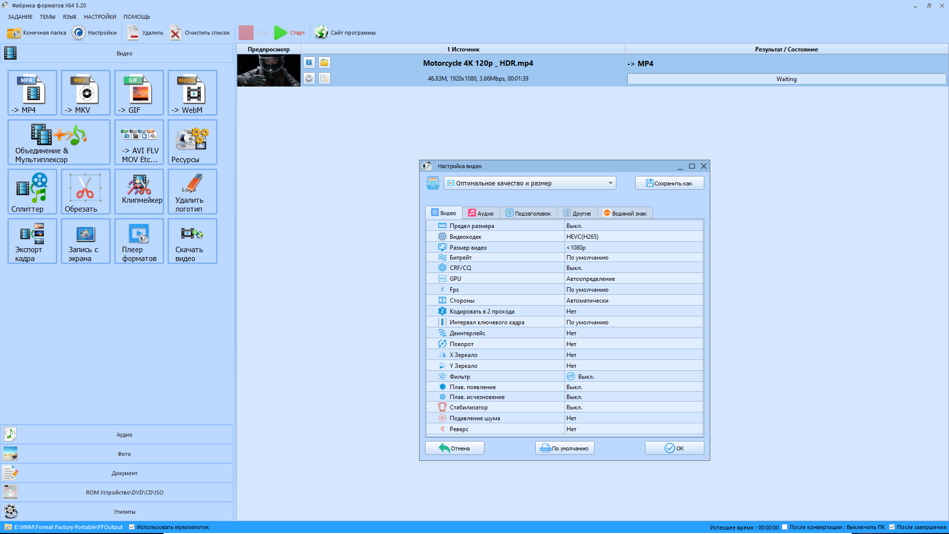 Format Factory — это мощный и универсальный мультимедийный конвертер, предназначенный для обработки видео, аудио и изображений различных форматов. Он отлично подходит как для профессиональных задач, так и для домашних пользователей, желающих быстро и удобно преобразовать файлы под нужный формат.