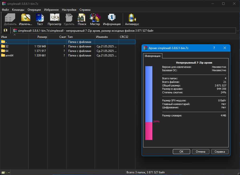 Ниже представлена актуальная информация о версии и сборке Fort Firewall, а также данных, связанных с репакером, если он присутствует: