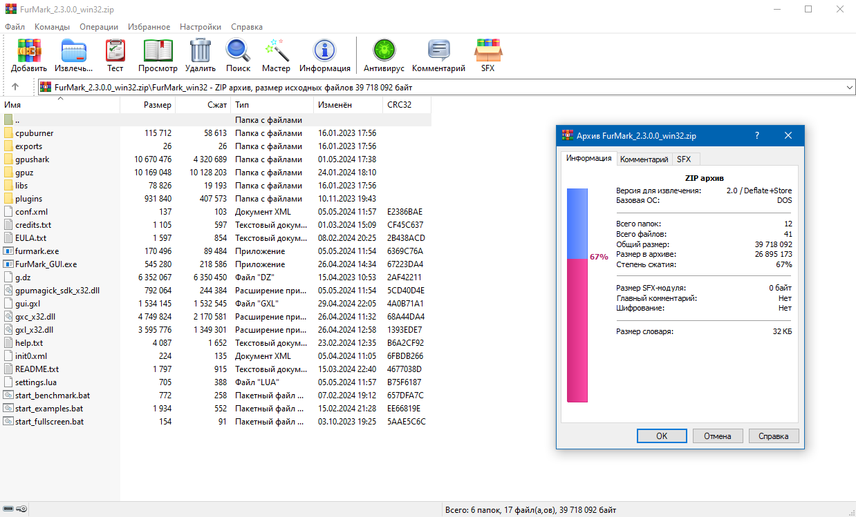 Ниже представлены основные технические характеристики FurMark 2.3.0.0: