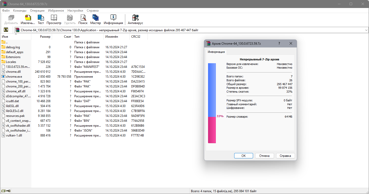 В этой таблице собрана основная информация о версии Google Chrome 130.0.6723.59 Portable от Cento8: